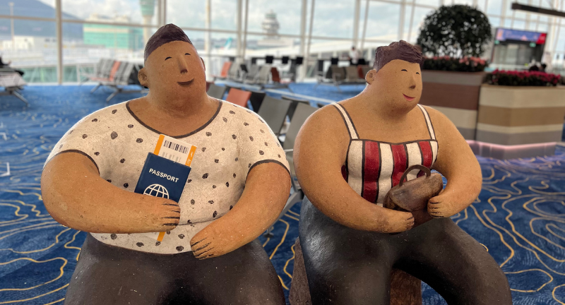 帰りのトランジットは香港空港・・・いつもこの巨漢マスコットに疲れも癒やされる